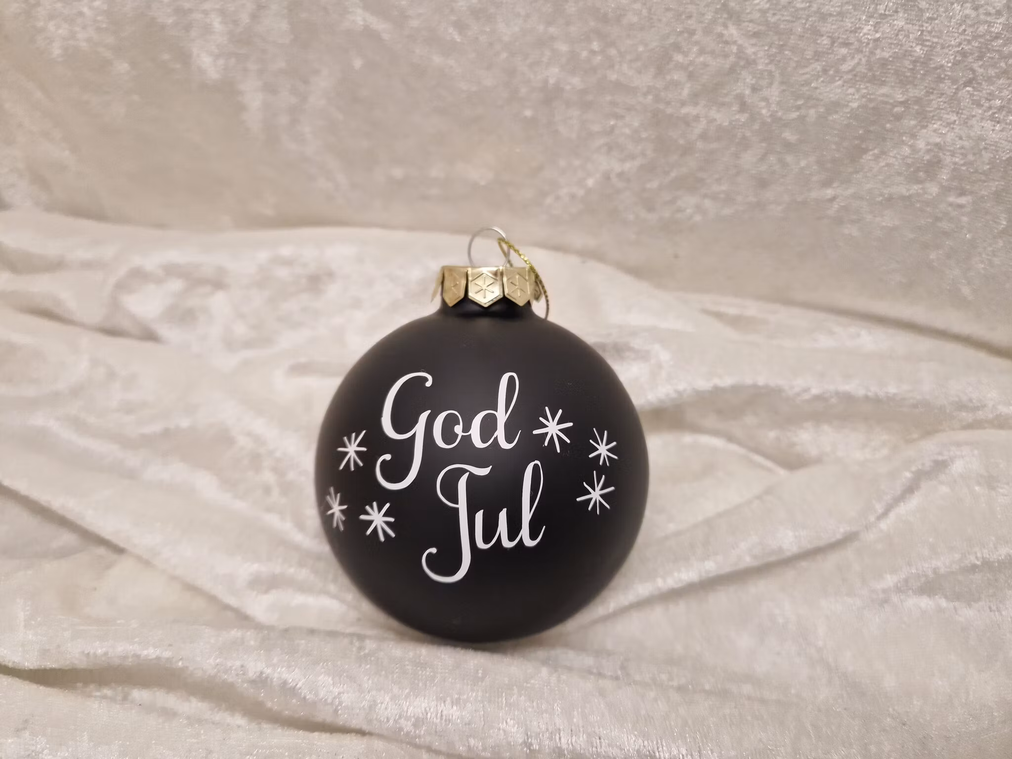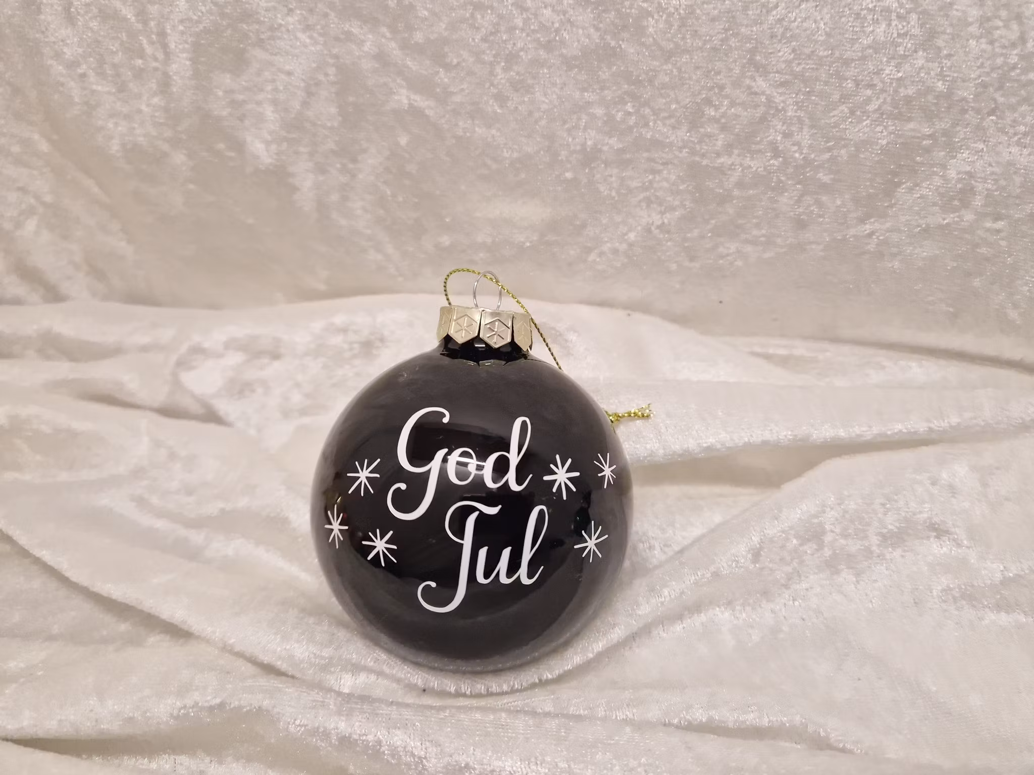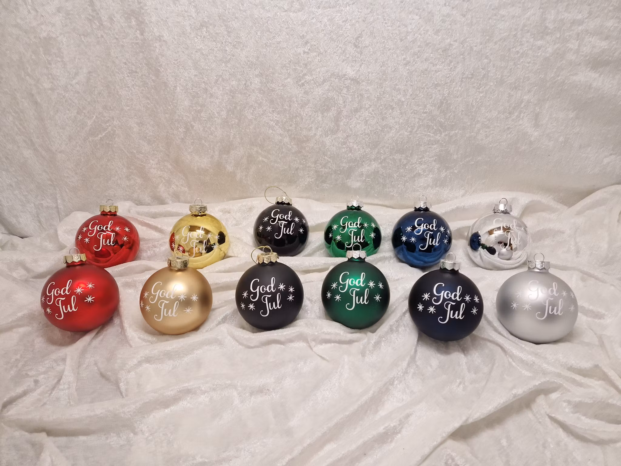 Julekuler med ensidig tekst. Kulene er 8 cm og leveres i eske tilpasset antallet kuler som bestilles 🎅 Fås i både matt og blank.