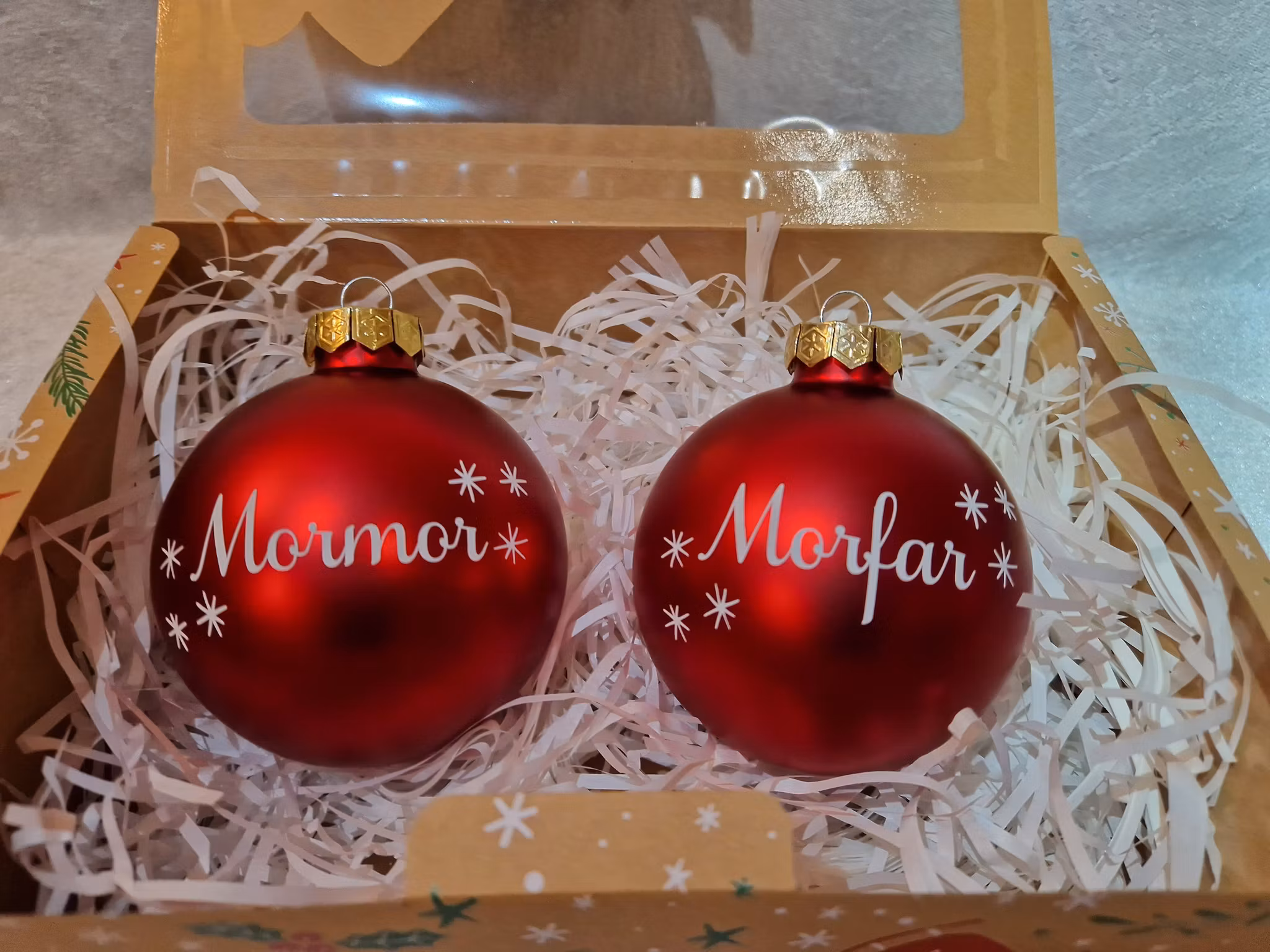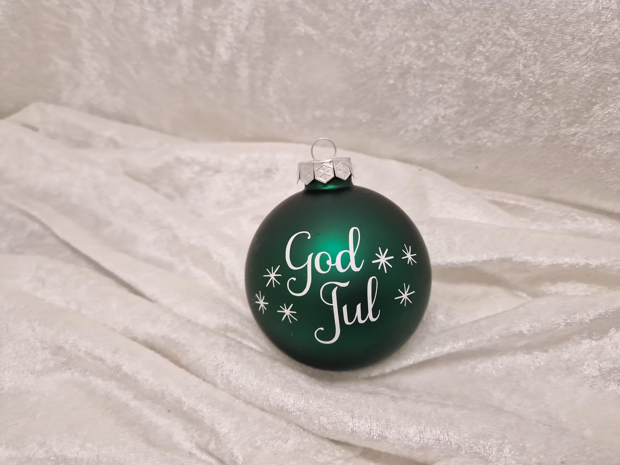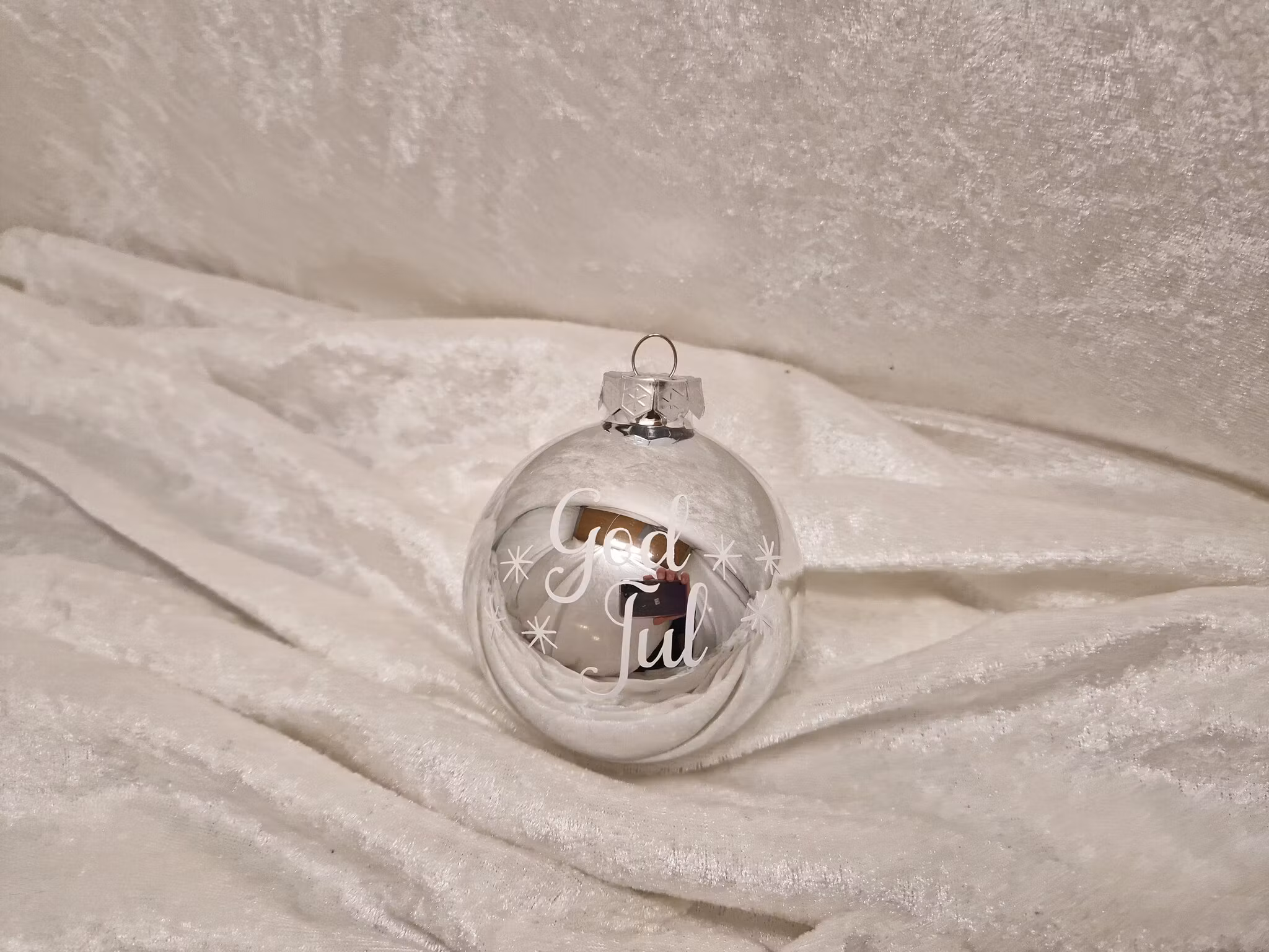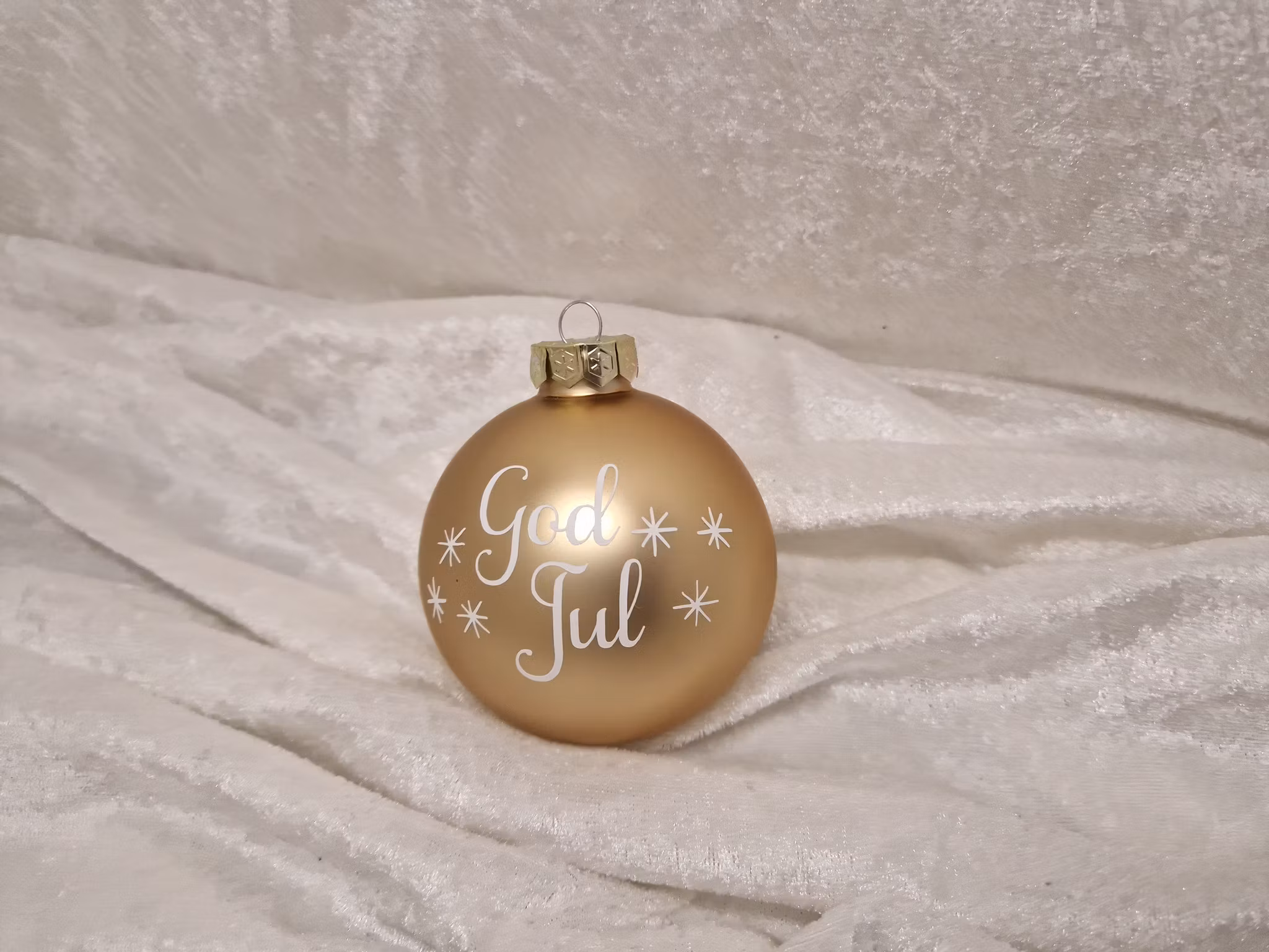 Julekuler med ensidig tekst. Kulene er 8 cm og leveres i eske tilpasset antallet kuler som bestilles 🎅 Fås i både matt og blank.