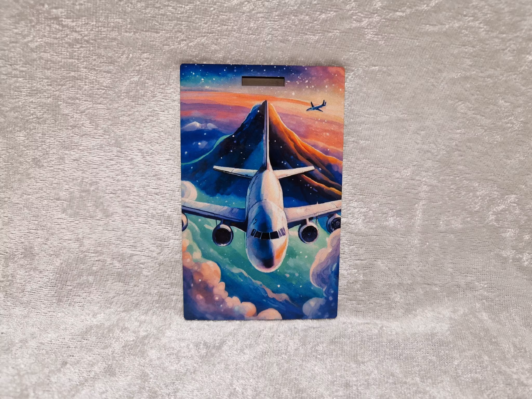 Bagasjelapp med flytrykk. Kontaktinfo trykkes på baksiden.